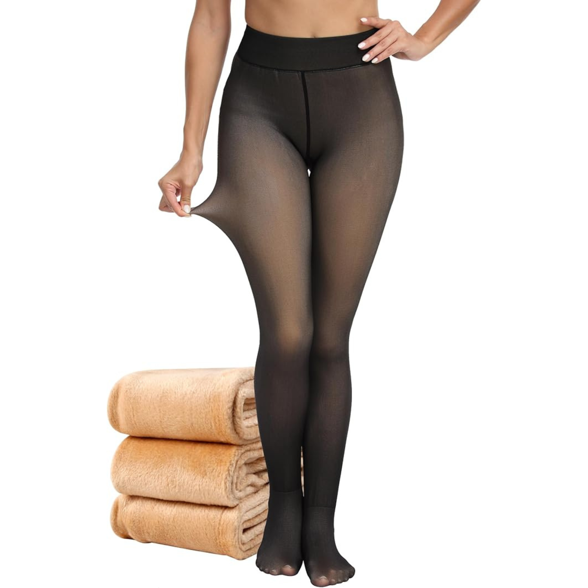 Women's Fleece Lined Winter Tights, High Waisted Thermal Leggings, Opaque Black, Stretch Fabric for Yoga, Running