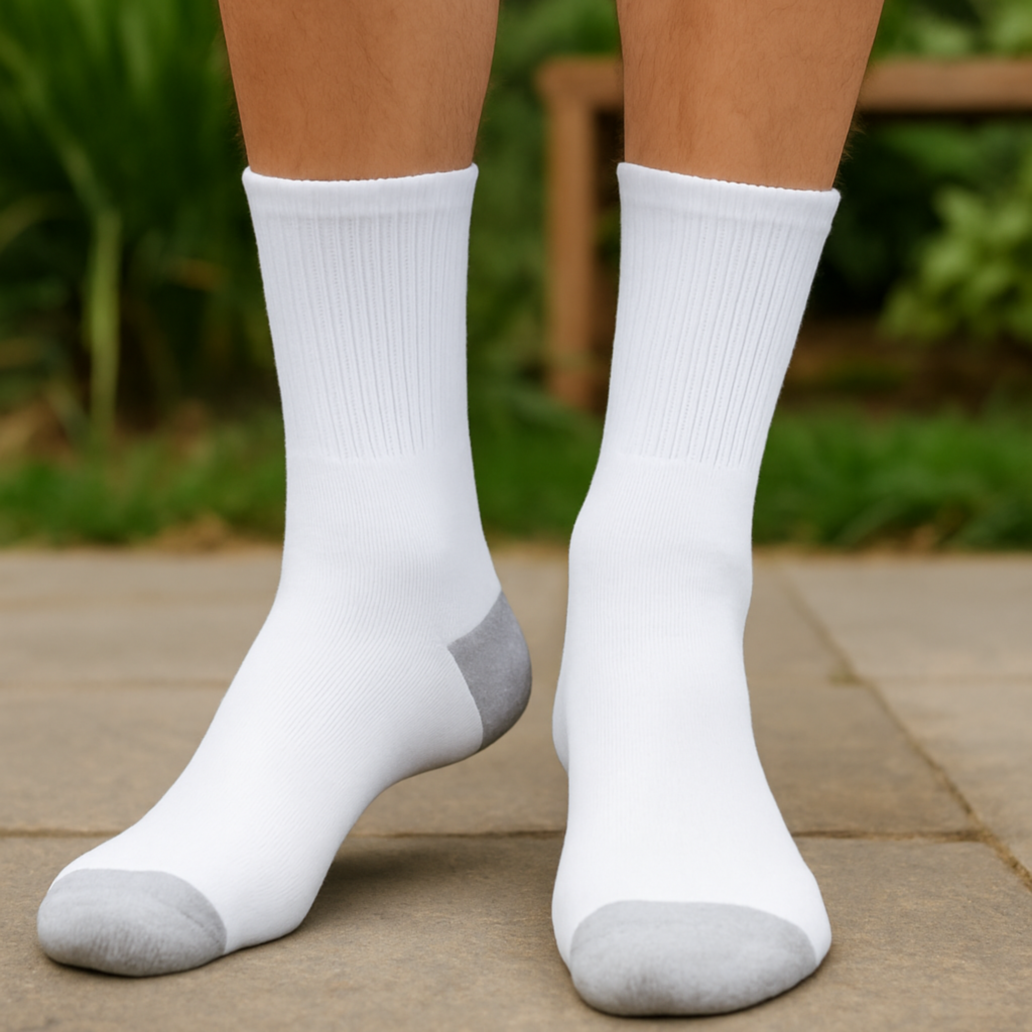 These white crew socks are just what I needed. They are soft, comfortable, and fit perfectly. I can wear them all day without any discomfort, and they stay in shape even after many washes. Very happy with this purchase!